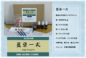 藍染が手軽にできるセットです。藍染は本物の藍を粉末状にしたものです。藍の他にも天然の3色、赤、緑、黄、が付いていて楽しめます。すぐに始めるためのバンダナとハンカチも付いてます。